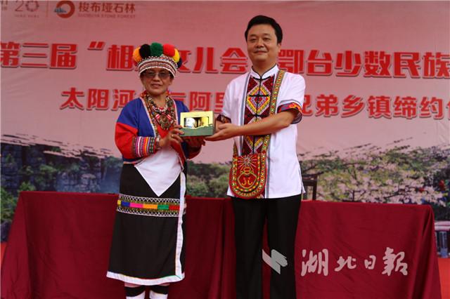 湖北日报网讯(全媒体记者李彦睿、通讯员姚瑶)8月31日,恩施市太阳河乡与台湾嘉义县阿里山乡缔结“兄弟乡镇”,掀起第三届“相约女儿会.鄂台少数民族手牵手”活动高潮。