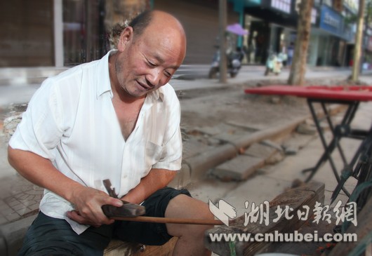 陈建林是孝昌县人,15岁便来到潜江拜师学习做秤,由于做事细心有悟性,2年后就出师摆摊,这一做便坚持了40余年。