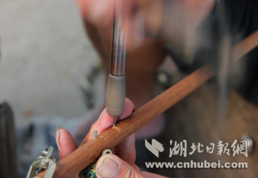 “秤杆一定要刨圆,称的时候才能滑到准确的斤两。”陈建林说,手工制秤每道工序都要求精雕细刻,容不得半点马虎。刨好杆,打磨好后,陈建林开始给秤杆打孔。