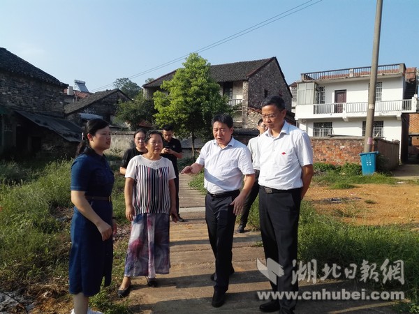 图为:接访群众结束后,市党代表一行到咸安区汀泗桥镇汀泗社区现场查看选址,规划建设活动中心。记者 张文龙 摄