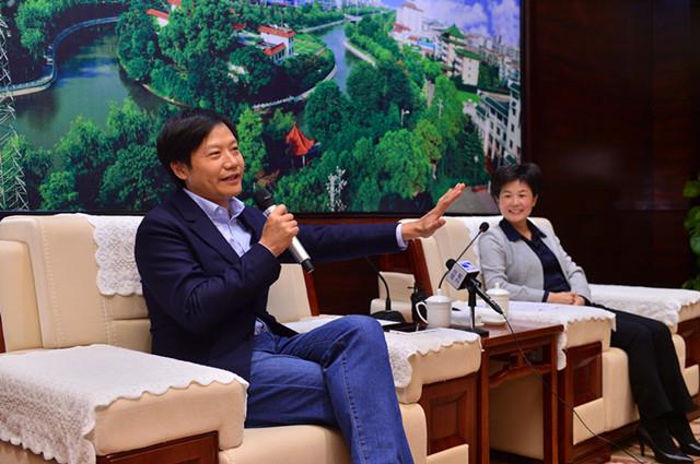 左为雷军,右为仙桃市长周文霞