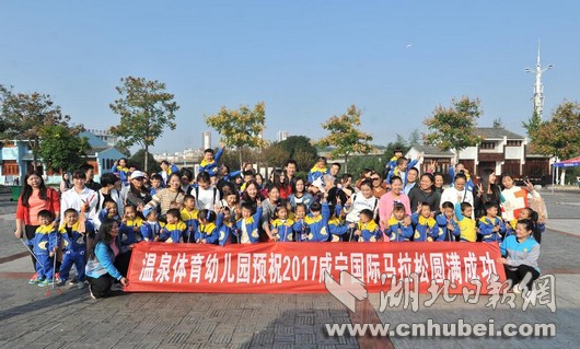 湖北日报网讯(全媒体记者张文龙、通讯员盘丽娟)28日,2017金盛兰杯咸宁国际温泉马拉松公益亲子徒步活动在咸宁十六潭公园举行。活动主题为“洁净咸宁 向爱奔跑”,吸引了50个家庭约125人参加,其中年龄最小者仅4岁。