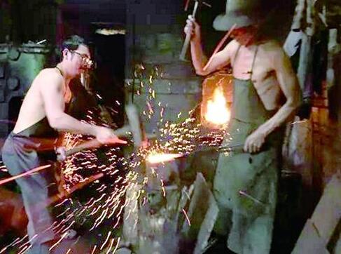 打造一件铁质工具,包括选料、切铁、取样、开板、烧火、捶打、成型、淬火等十来道工序,捶打四五千次,每个步骤都有讲究。烧铁的时候要注意火候,既要将铁烧熟,又不能烧化了。