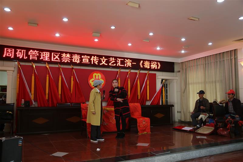 湖北日报网讯(全媒体记者彭磊)7日,一台由潜江市民间花鼓剧团创作的禁毒题材花鼓戏《毒祸》在该市周矶管理区社区禁毒中心上演。该剧讲述一名年轻人在吸食毒品后,生活发生巨大变化的故事。今年,该市禁毒办邀请市民间花鼓戏团创作该剧并在全市乡镇、企事业单位巡演。
