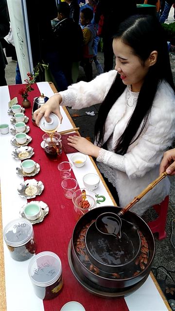 在咸宁茶友会成员逸思园生态茶叶展台前,茶客络绎不绝。大家品尝瑶山红茶、桃花尖白茶、泉谷毫峰绿茶等产品,相互交流品茶心得。“青砖茶膏,这还是第一次见到。”在咸宁高新区温泉茗乐堂茶楼展台前,品尝秘制的青砖茶膏后,不少老茶客对其浓郁的药香气和明显的解酒功效赞不绝口!