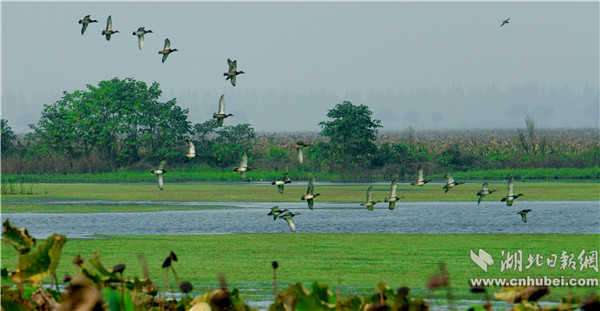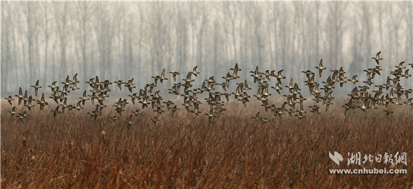 湖北日报网讯(全媒体记者刘自贤、通讯员周冬梅、冯必忠)11月以来,北方持续降温,候鸟陆续南迁。潜江市多个湿地迎来了远道而来的客人——大批候鸟。它们在此群集越冬或作为中转站继续南飞,场面壮观。