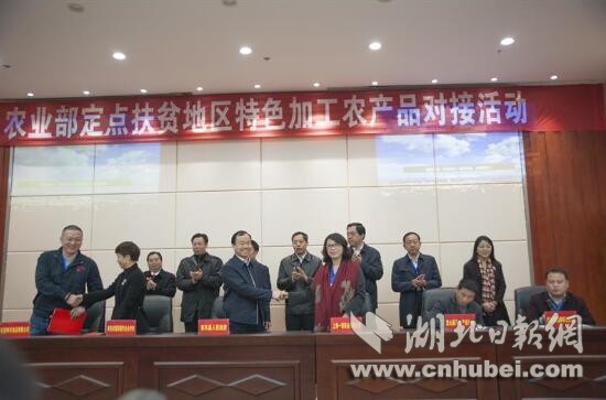 湖北日报网讯(全媒体记者李彦睿 通讯员李正飞)22日,农业部在来凤县举办农业部定点扶贫县特色农产品对接推介。签约项目3个,金额5.72亿元。其中来凤斩获项目2个,金额5.5亿元。