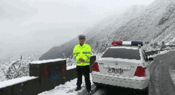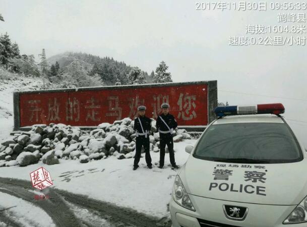 昨日上午,走马派出所民警介绍,图片中站的位置是鹤峰县走马镇341省道大垭路段,海拔1550米,地面温度零下5度,路面积雪厚度达到3厘米。警方准备应急预案,准备了500kg工业盐,随时对路面积雪融化。提醒过往驾驶员减速慢性、带好防滑链。