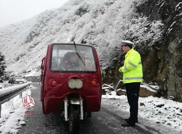 楚天都市报11月30日讯 (记者陈俊 通讯员喻欣 秦利)11月30日上午10时左右,恩施州鹤峰县走马镇大垭路段迎来初冬的第一场雪,造成部分路面出现较为湿滑的现象,对道路交通造成不良影响。为了确保群众出行安全,鹤峰交警在车流量大的重点路段,提醒过往司机保持车距、缓慢驾驶。