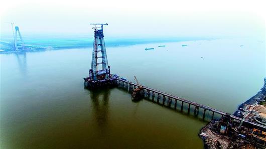 湖北日报讯 12月4日,正在建设中的嘉鱼长江公路大桥南北主塔分别达到164米、158米,相当于50多层楼高。大桥建设者开展劳动竞赛,力争在2018年春节前完成主塔封顶。咸宁市拥有128公里长江岸线却没有一座长江大桥,嘉鱼长江公路大桥2019年底建成通车后,将终结咸宁无长江大桥的历史。 (湖北日报全媒记者 陈勇 通讯员 周漓 摄)