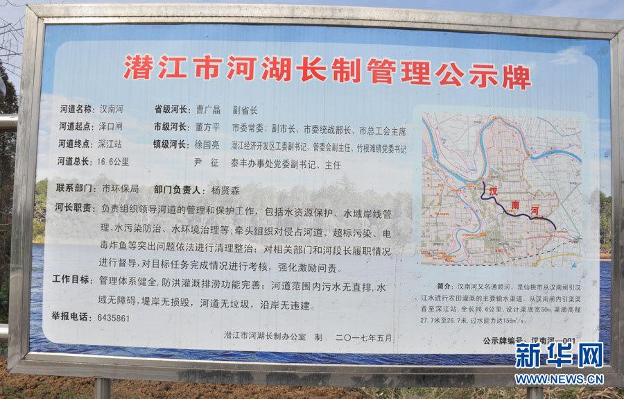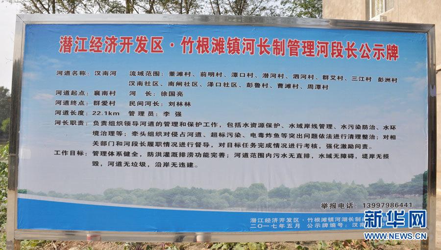 图为潜江市河湖长制管理公示牌。新华网 陈剑 摄