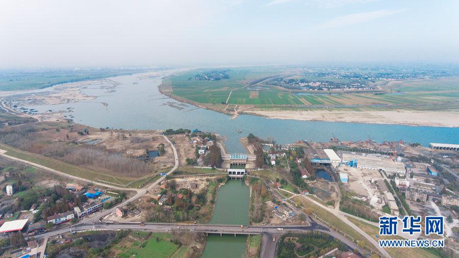 图为航拍通顺河(潜江段)由汉江引水。新华网 闵任之 摄