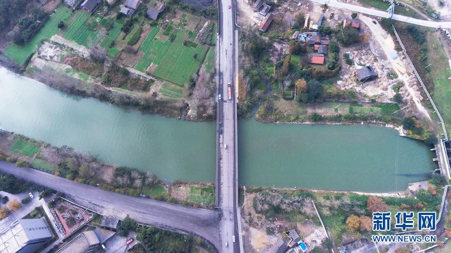 新华网新闻无人机队“飞阅长江”报道组人员沿通顺河(潜江段)行至汉南河桥上,只见桥下引入的汉江水流向下游,河面从外表看比较干净且未发现明显的漂浮物。河的两岸看得出经过整理,少有杂物,显得比较整洁。