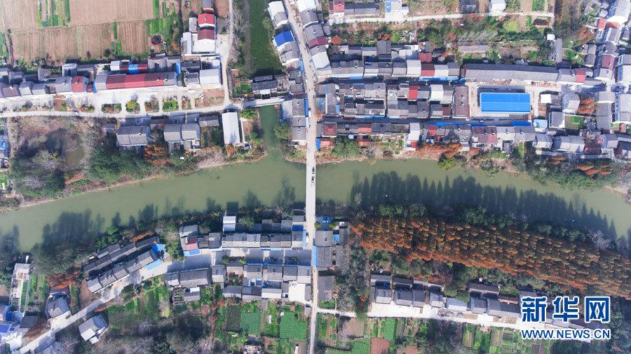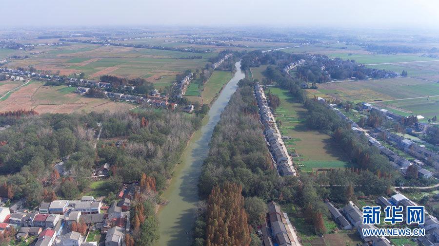 图为航拍通顺河(潜江段)沿线。新华网 闵任之 摄