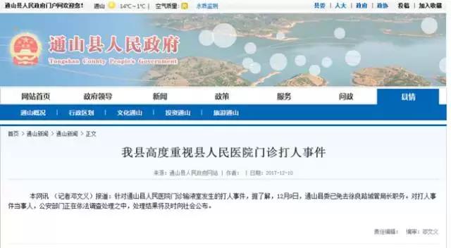 今日(10日)上午,通山县政府通报了县人民医院门诊打人事件最新情况: