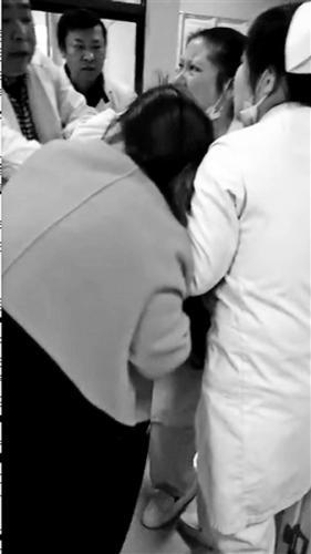 这名女子对着输液室喊:“她跟我打架踩我儿子,有什么资格做护士,我一来她就骂我,我要见医生。”随后,她抱起儿子冲进输液室继续喊:“作为护士你打孩子,你有孩子吗?”