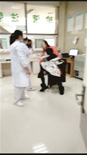 图为:房某(右)情绪比较激动护士被踢倒在地