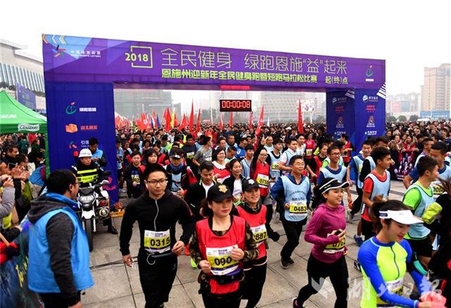 体育与文化相契、健康与绿色相融。4.5公里的全民健身跑和17公里的短程马拉松比赛赛道,设在恩施州城金桂大道、金子坝路、金龙大道、金山大道、金凤大道。奔跑中,万名跑友成为恩施州城美丽风情。选手张谦以1小时11分40秒的成绩获得女子中年组冠军,张妮以1小时零2分32秒的成绩获得女子青年组冠军,杨红伟以57分17秒的成绩获得男子青年组冠军,田大朋以1小时零2分26秒的成绩获得男子中年组冠军。