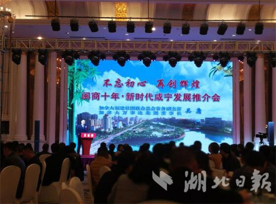 湖北日报讯(记者张文龙、通讯员饶红斌)12月29日下午,咸宁市举办“不忘初心 再创辉煌”闽商十年·新时代咸宁发展推介会。会上透露,近10年来,咸宁市福建商会吸纳会员企业400多家,聚集闽商3万多人,投资总额600多亿元,成为咸宁规模最大、人气最旺、影响力最强的一个异地商会。