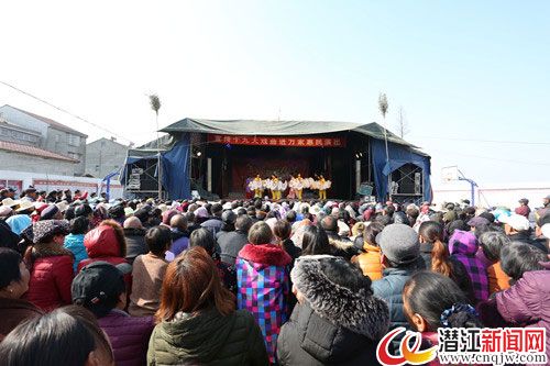潜江新闻网讯 (见习记者 谭欣 通讯员 金鑫)为贯彻落实十九大精神,繁荣农村精神文化建设,学习乌兰牧骑“红色文艺轻骑兵”的精神风貌,元月 9日至11日,省花鼓戏艺术研究院的演职员们为渔洋镇谢小村村民送上了一台台精彩纷呈的视听盛宴。