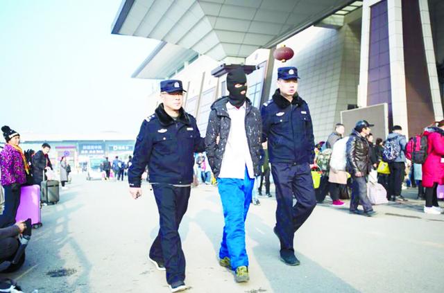 17日15时47分,K458次列车从海口准点到达武昌站。在仙桃市公安局刑警支队副支队长闵国兵和民警罗山的押解下,一名戴头套的男子缓缓走下列车。