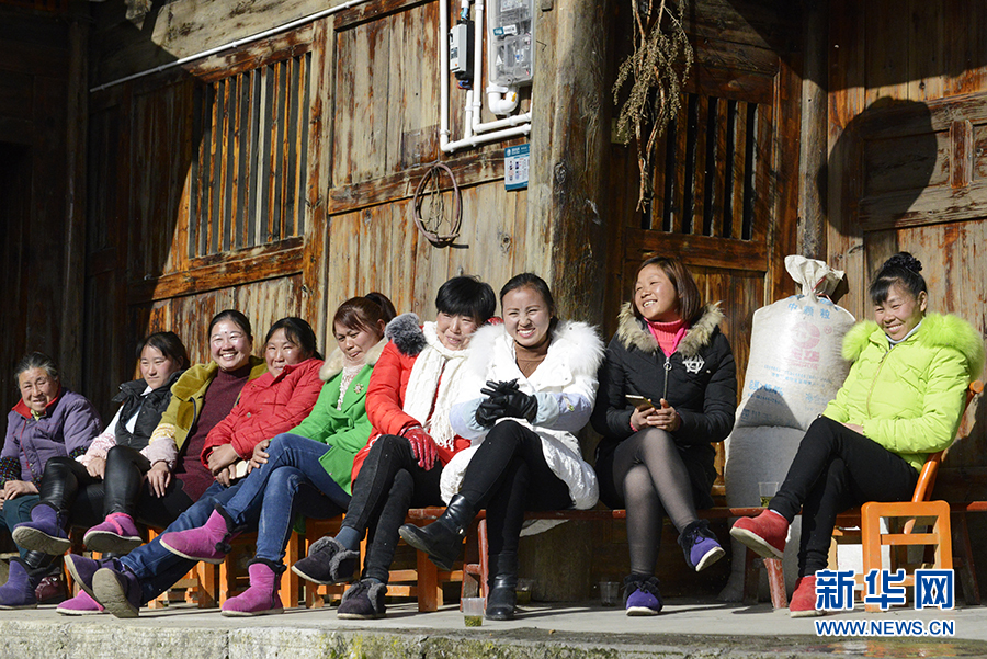 图为在现场晒太阳、“围观”座谈会的店子坪村民。新华网 欧阳小洁 摄