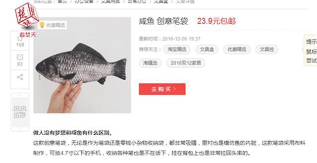 据了解,“咸鱼”笔袋的主人是个初一孩子,记者联系他的妈妈后得知,笔袋是孩子在网上挑选后,她购买的。“不知道他为什么喜欢这个笔袋。”事后,记者在淘宝、京东上搜索“咸鱼笔袋”后,也确实发现了类似的笔袋。