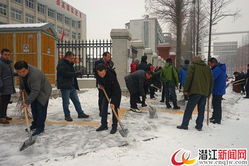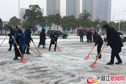 “我们局机关大部分力量都出动了。”教育局党组成员黄其汉介绍,27日晚上接到通知后,市教育局迅速联系潜江电大、潜江中学、园林二中、实验小学等学校,组织近300名人员在各学校门口开展了义务除雪,确保人民群众出行安全。