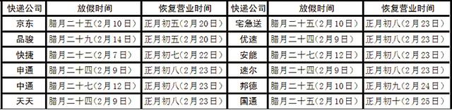 各快递公司放假时间 不统一、不固定