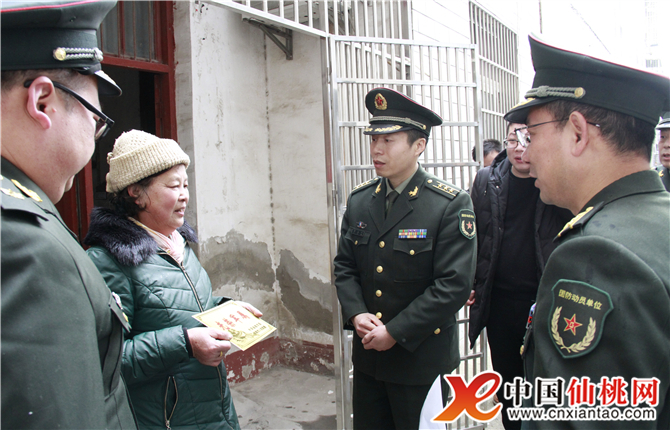 经市人民政府同意,市人武部、市双拥办、市民政局商定共同走访我市在乡老复员军人,革命烈士家属,因公牺牲军人家属,病故军人家属,部分现役军人家属,2016年、2017年入伍的义务兵家庭,采取一壶油、一袋米、一副对联、一张年画“四个一”的方式把党和政府的温暖送到他们手上。