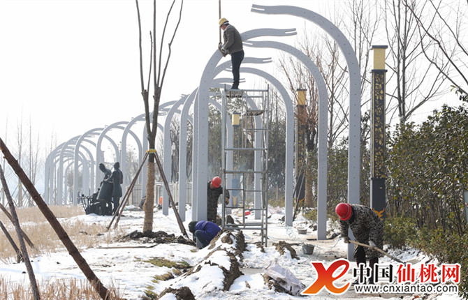 景观带里,一批工人正在安装廊架,这里将会是2000米的花廊,看了展板介绍的市民金志千似乎对这个花廊很有兴趣,像个小监工在旁看工人们施工。“我住在对面金台社区,以前去沔阳公园、体育广场游玩太远了,现在家旁边就有这么好锻炼、休闲的地方,太高兴了,现在还没建好,我们街坊领居就几乎每天来这里走走,很期待它建好的样子。”今年70岁的金志千平常喜欢看报纸,临走前兴奋地跟记者说了一句,这里很符合“仙桃打造水乡田园城市”的响应。