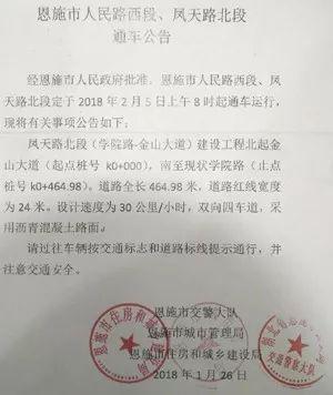 经恩施市人民政府批准,恩施市人民路西段、凤天路北段(施南古城段)定于2月5日上午8时起通车运行。