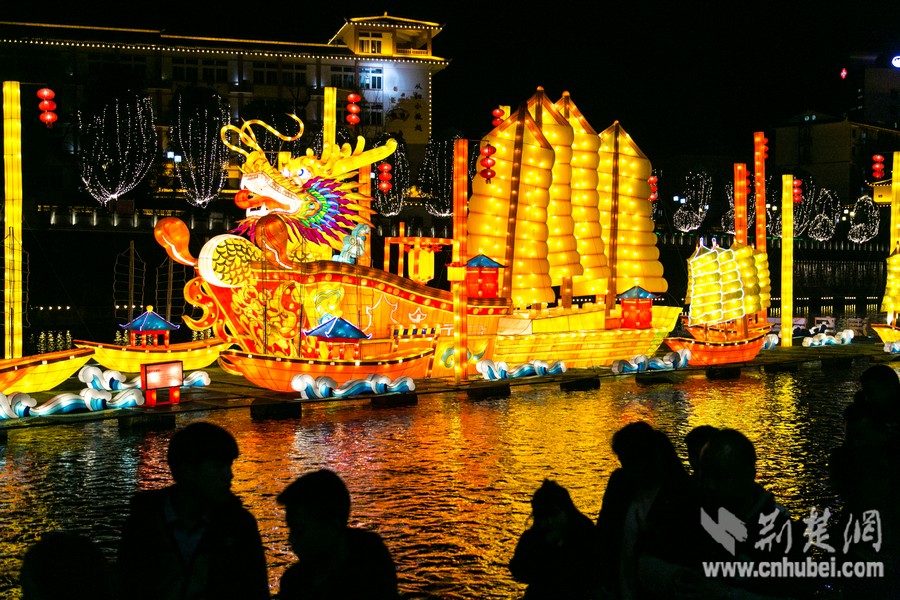 荆楚网消息(记者 刘建维)2月20日晚,入夜的贡水河两岸流光溢彩、人来人往。河中一组组绚丽而富有宣恩特色的大型灯展矗立,整个小城被流光溢彩的璀璨图景装扮得多姿多彩。此次灯展的立体灯组以及平雕灯,由来自四川自贡的灯艺大师们手工打造,无论在创意、品味、种类和规模上,都呈现出新意和美观。据悉,此次灯盏从去年腊月二十起便已开展,并将持续展览两个月。