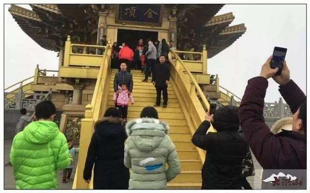 游客们徒步前往金顶祈福