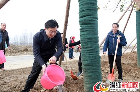 潜江新闻网讯 (记者 曹以成)早春的潜江,树木吐青,一片生机,植树添绿,正逢其时。2月25日,市委书记黄剑雄,市委副书记、市长龚定荣,市委副书记舒敏,市人大常委会主任李金萍,市委常委金茂清、黎喜斌、董方平、李江鸿、崔传金、荣延善、吴熙垚及市人大常委会、市政府、市政协领导一行,来到后湖管理区莫岭大道开展义务植树活动,为“绿满潜江”挥锄添绿,拉开全市义务植树的序幕。