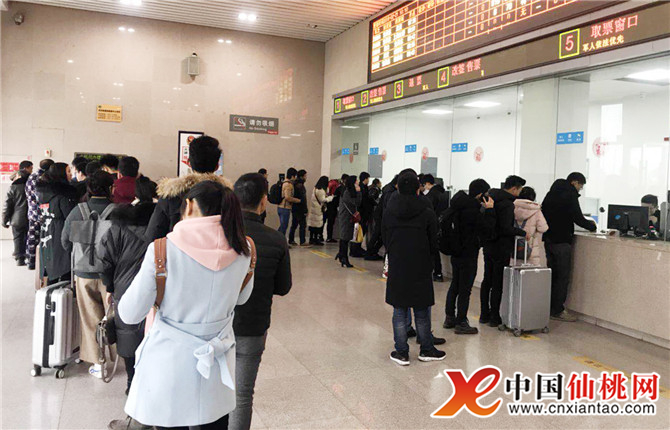 2月26日上午,记者看到,在仙桃西站候车厅挤满了返程的旅客,在购票大厅、进站口、检票区等地也排起了“小长龙”。
