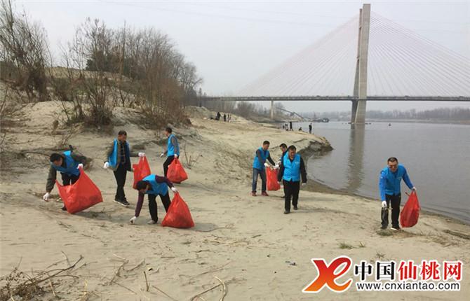2月25日,节后第一个休息日,阳光灿烂,适合踏青休憩,一群穿着蓝色小马甲的志愿者活跃在襄河岸边,想用自己的休息时间和行动让母亲河恢复往日靓丽容颜。