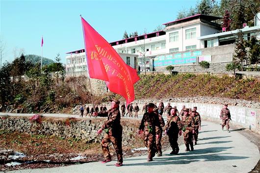 湖北日报讯 图为:3月8日,恩施州委统战部驻鹤峰县容美镇七峰村“女子尖刀班”成员,去海拔1300米的滕家堡的路上。(湖北日报全媒记者 刘畅 通讯员 朱元平 摄)