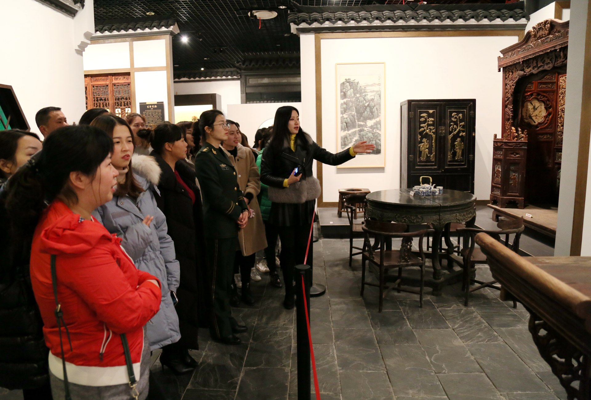 参观咸宁市博物馆。活动最后,消防支队组织全体女同志走进咸宁市博物馆,感受咸宁的历史文化和风土人情。在市博物馆,跟随着讲解员的精彩解说,通过大量的照片资料、人物浮雕、历史遗物等,向大家直观地展现了咸宁的历史、文化、艺术、宗教、民俗、政治等方面独具魅力的灿烂文化,也深入了解了咸宁历史和发展历程,用心领略了青铜的古朴厚重、古瓷的庄重典雅、书画的笔墨神韵等,一种民族自豪感和爱国热情在心中油然升腾,深深地被咸宁博大厚重的文化折服。