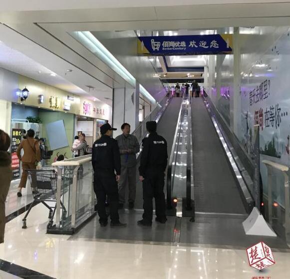 晚8时许,楚天都市报记者来到该商场,该广场中的保安以设备检修为由要求各商场关门,并拒绝顾客入内。记者看到,该商场的手扶电梯与墙体之间约有20厘米的缝隙,没有密封也没有网格护拦。记者离开时,看到民警赶来调查。