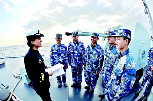 虽然2016年就来到舰上报到,但此后杨扬去军校学习一年,真正上舰工作是2017年7月,至今不到一年。为此,她三句话不离一个“新”字。“第一个新是新舰。”杨扬如数家珍般地介绍,沂蒙山舰是我国自行研制的新型两栖船坞登陆舰。“第二个新是新职手。”去年7月上舰工作,杨扬说自己此前船都很少坐,更别说军舰了。刚开始那份兴奋和激动很快就没了,因为晕船实在吃不消。记忆犹新的一次是出海训练,她还没来得及熟悉岗位,就随舰来到海上。“那次,舰艇刚驶离码头不久,遇上风浪。我一会儿抬头紧盯警戒雷达,一会儿低头修订目标参数。不到两小时,就头晕目眩,吐得厉害。别说上战位值班,坐着都难保持平衡。”好在经过一段时间适应,她逐渐习惯了海上颠簸,只要不是遇到大风浪,她都能坚持下来。“第三个新就是新岗位。”杨扬说,加入海军成为一名女军官,她面对的是一片崭新领域,很多知识要去钻研,向战友和领导们多请教,在实践中多锻炼,尽快承担起全新的职责。“唯有多学、多问、多实践,才能胜任岗位。”杨扬说,这就是她给自己定下的“三多”。