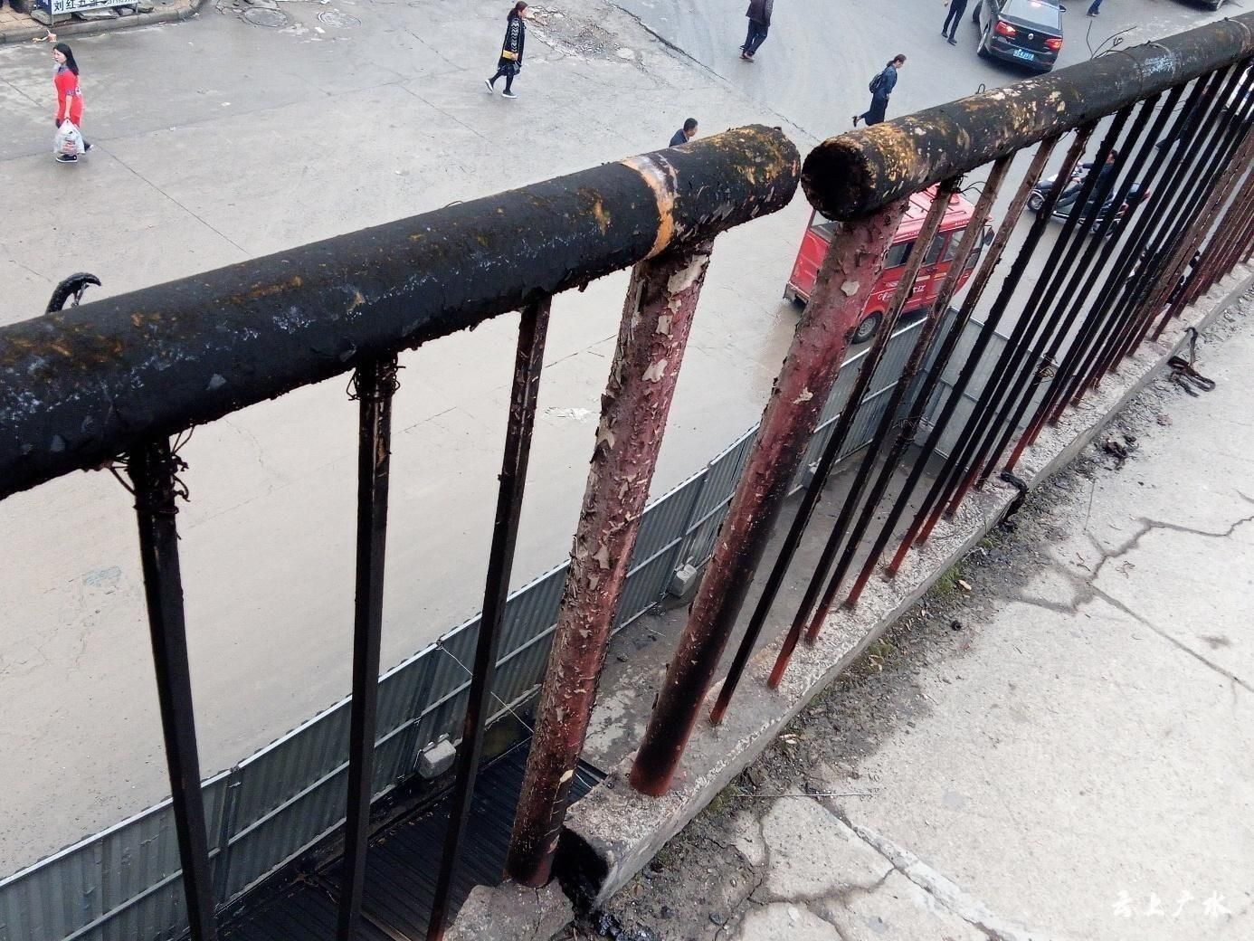 桥上的扶拦和广告牌已烧坏