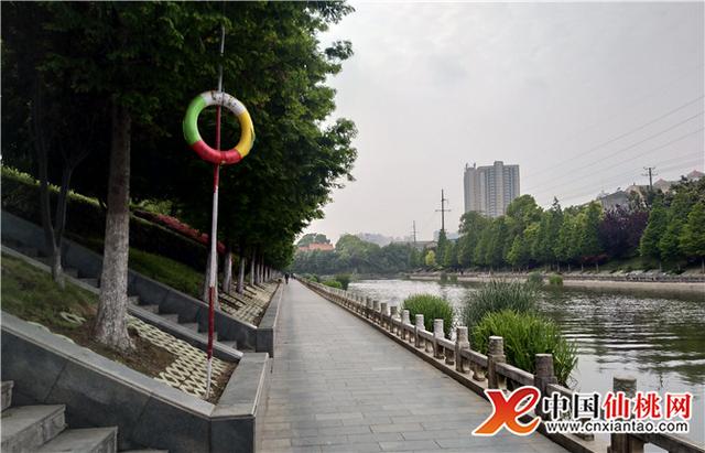 多雨的季节,河水随之上涨,河边戏水危险性也增加。4月25日,记者在仙下河边看到每隔一段距离插有一根救生竿,中间挂着一个救生圈,简约而大方,简单而实用。