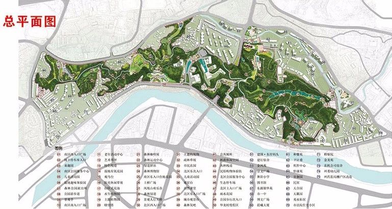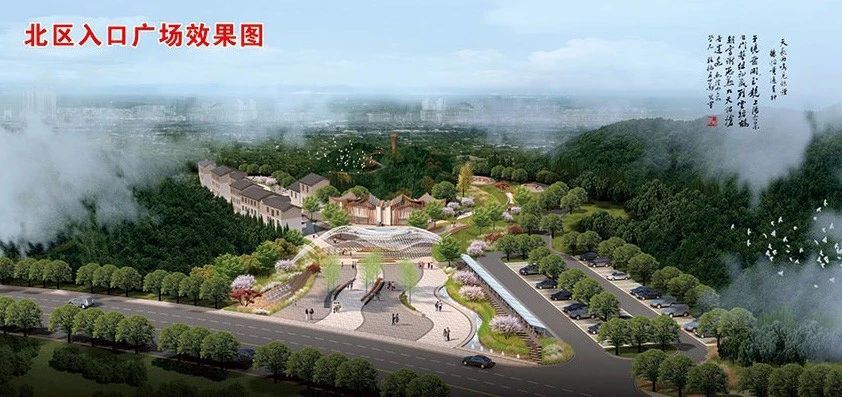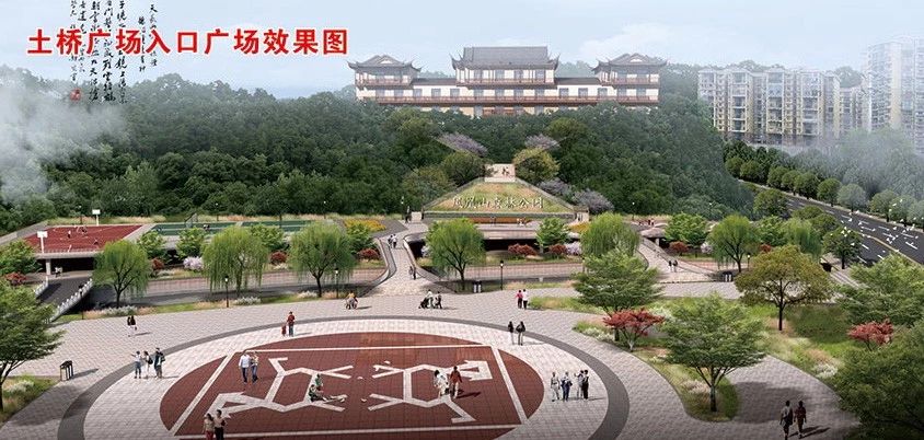 规划结合未来城市发展,在现状老年大学的基址上建设公园南入口广场 ,打开视线通廊,通过步行隧道的设置,加强公园内部与城市的联系,与龙洞河滨水景观共同构成城市一道亮丽的风景线。