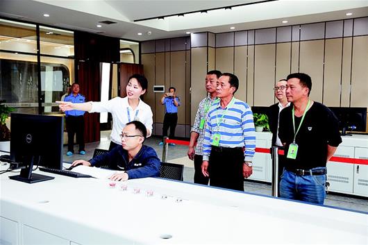图为:2018年4月5日,项目周边村义务监督员代表进场,了解设备运行情况以及垃圾焚烧各项数据指标。