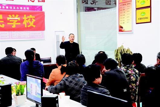 图为:仙桃市委党校工作组组织社区居民到市民学校进行集中宣教。