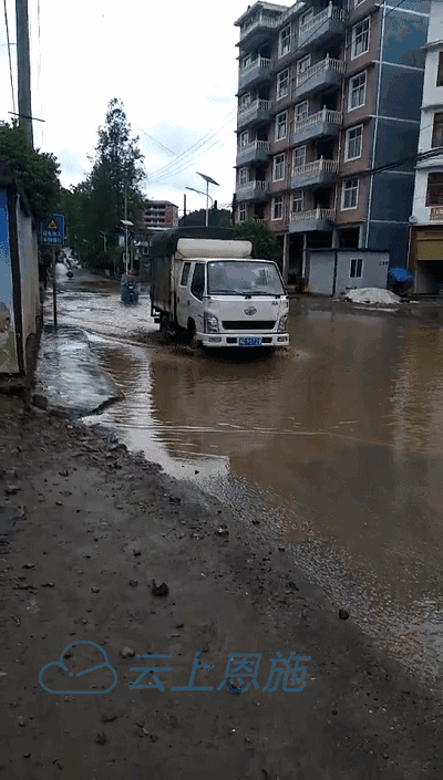 恩施市阳鹊坝小学门口马路上出现很深的积水,行人通过困难,请绕行!