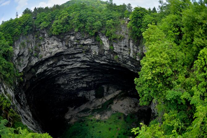 这是5月17日在湖北省宣恩县锣圈岩村拍摄的“天坑”。