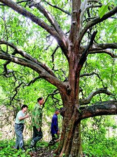 图为:大畈镇白泥村一棵150多年的枇杷树,枝繁叶茂。