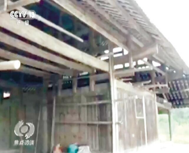 图为当地老木质民房年久失修央视截图